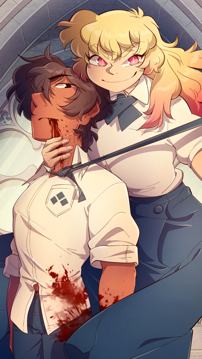 [un]Divine is a dark fantasy comic that deals with revenge, morality, friendship and monsters. Not really suitable for people under 16 for mild language, blood/gore and violence.